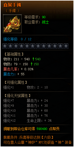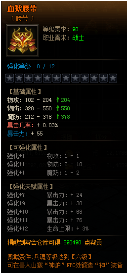 获取方式:击杀神罗天界中的BOSS“神罗天神”有几率掉落装备碎片,使用碎片可在NPC“兵魂之刃”处合成