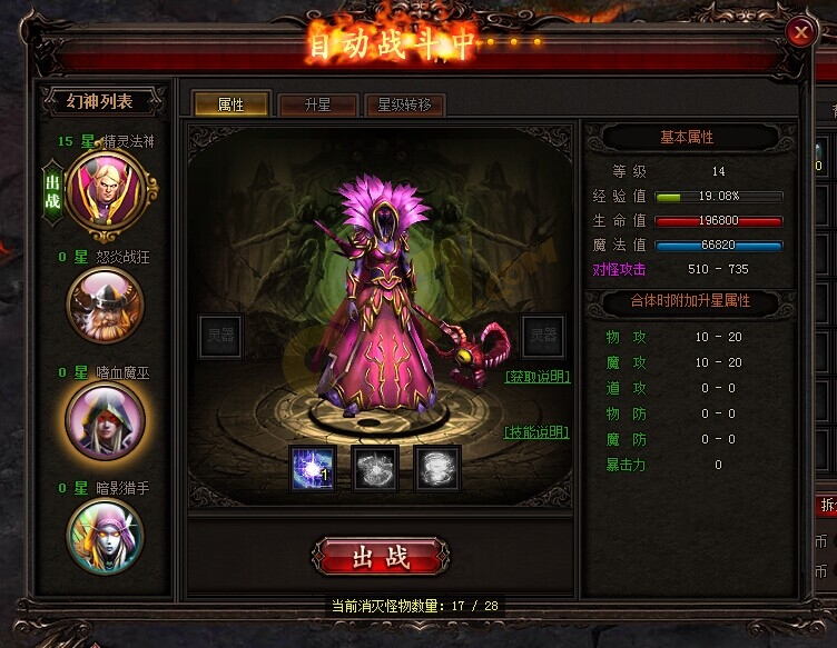 雷霆之怒嗜血魔巫与其他幻神一样,可通过升星、佩戴灵器等方法,来提升其战斗力。