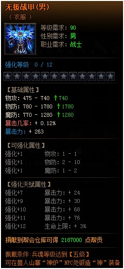 在新地图“修罗天界”击杀Boss修罗天神有几率获得碎片,碎片可在雷霆城“兵魂之刃”NPC处合成兵魂装备