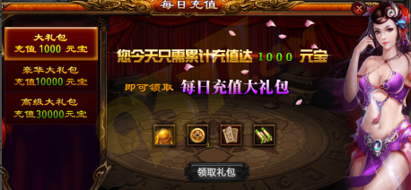 《雷霆之怒》除了游戏内免费金钱产量高、装备由野外地图boss爆出等多种福利外,还有专为非RMB玩家定制的很级丰厚首充奖励,来看看吧!